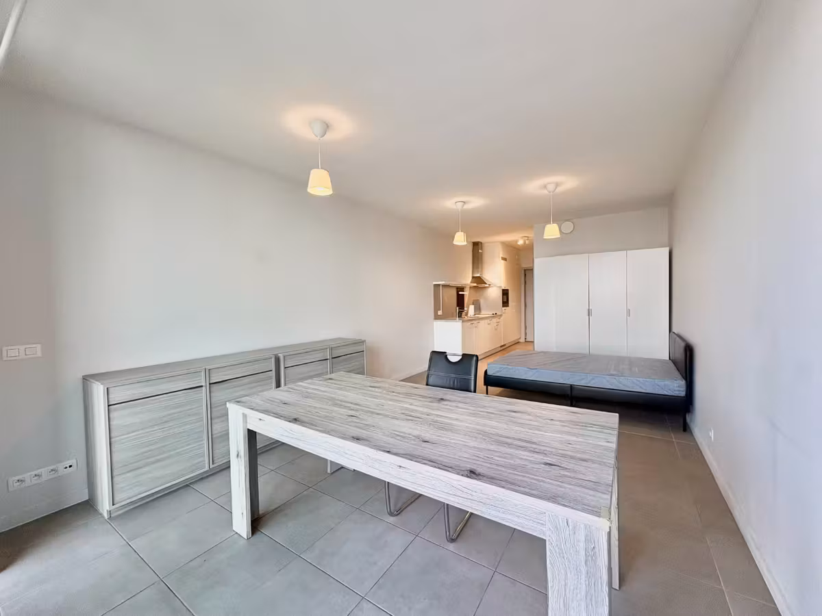 Instapklare studio te huur op de tweede verdieping in residentie LEFT te Linkeroever. Deze studio heeft een bewoonbare oppervlakte van 42m² met een ruim terras. Er is een badkamer aanwezig met inloopdouche, lavabo en toilet + een geïnstalleerde keuken. Inclusief kelderberging. Hier woont u op een ideale ligging in de nieuwe wijk Regatta op Linkeroever vlakbij een park, zeilmeer en het bruisende Antwerpen. Zeer gemakkelijk bereikbaar met de auto als met het openbaar vervoer!