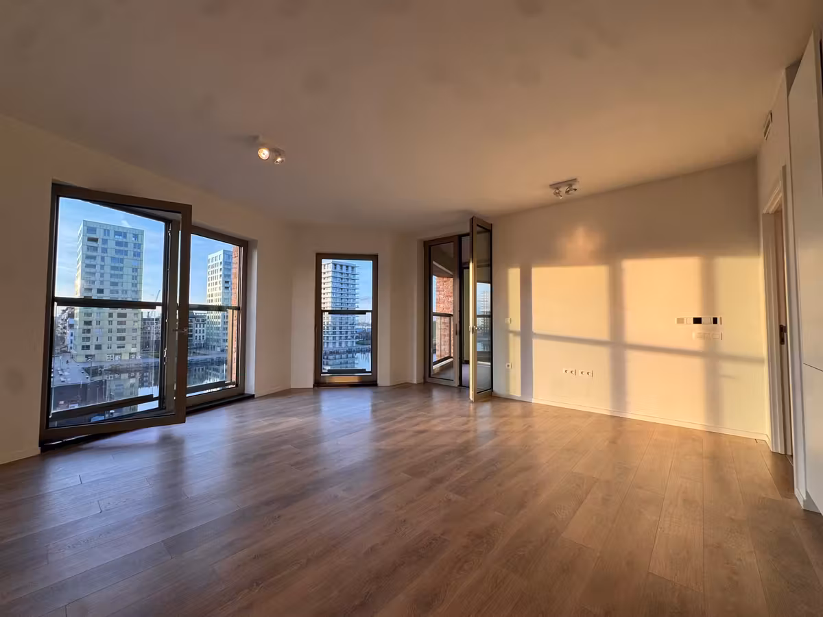 Recent appartement met prachtig zicht op het water. Indeling: Hal met twee kastenwanden en gastentoilet met handenwasser, zonnige leefruimte met open keuken voorzien van inductiekookplaat, vaatwasmachine, combi oven en grote ijskast, hoofdslaapkamer met kastenwand, een tweede kleinere slaapkamer en badkamer met dubbele wastafel, inloopdouche en toilet. Via de leefruimte en de slaapkamers heeft men toegang tot zuid-west geörienteerde loggia met open zicht op het Kattendijkdok, het MAS en de jachthaven. Ruime berging met aansluiting voor wasmachine en droogkast. Autostaanplaats verplicht bij te huren aan 100 € per maand. Bijzonderheden: unieke ligging op het Eilandje, luxueuze afwerking, ingemaakte kasten in de hal en de slaapkamer, elektrische zonneschermen, eerste bewoning, onmiddellijk beschikbaar, verhuur aan vennootschap mogelijk.