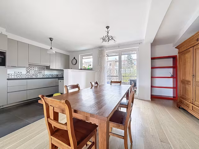 GANSHOREN : appartement situé proche du Chateau Rivieren reconnu pour son cadre résidentiel et son accessibilité, entre l'Avenue Van Overbeke et l'Avenue de l'Exposition Universelle. A proximité de commerces, écoles, et desservi par de nombreux transports en commun. Nous vous présentons cet appartement de 82m² au 2ème étage d'une copropriété, avec ascenseur. L’appartement se compose comme suit : hall d'entrée, séjour comprenant un espace salon et une salle à manger donnant accès à deux terrasses, cuisine ouverte, buanderie, deux chambres, salle de douche, wc séparé et cave. Un emplacement de parking intérieur est compris dans le loyer.